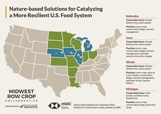 Nature-based Solutions for Catalyzing a More Resilient U.S. Food System is the only U.S.-based project included as part of the Climate Solutions Partnership, which HSBC announced today. The Partnership aims to address barriers to scaling sustainable projects and to bring climate solutions to commercial viability, while also delivering for people and nature. Together with partners World Resources Institute (WRI) and World Wildlife Fund (WWF), the global initiative is backed by $100 million of philanthropic funding from HSBC over five years.